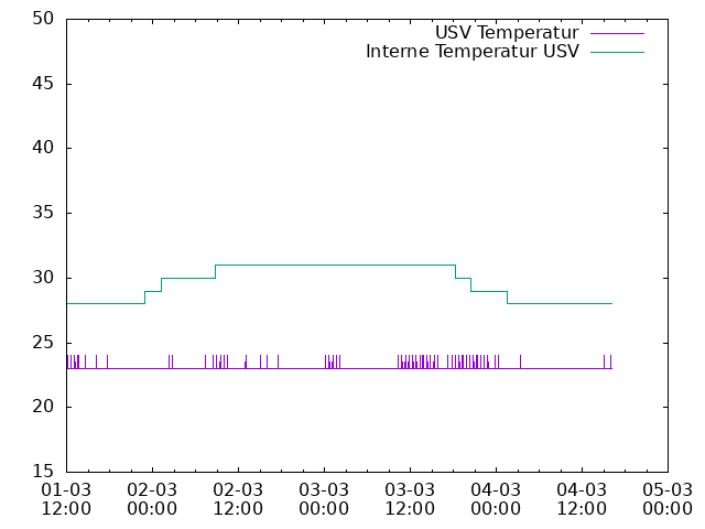 Temperaturfühler der USV: 23 der USV-Batterie: 29 Grad Celsius